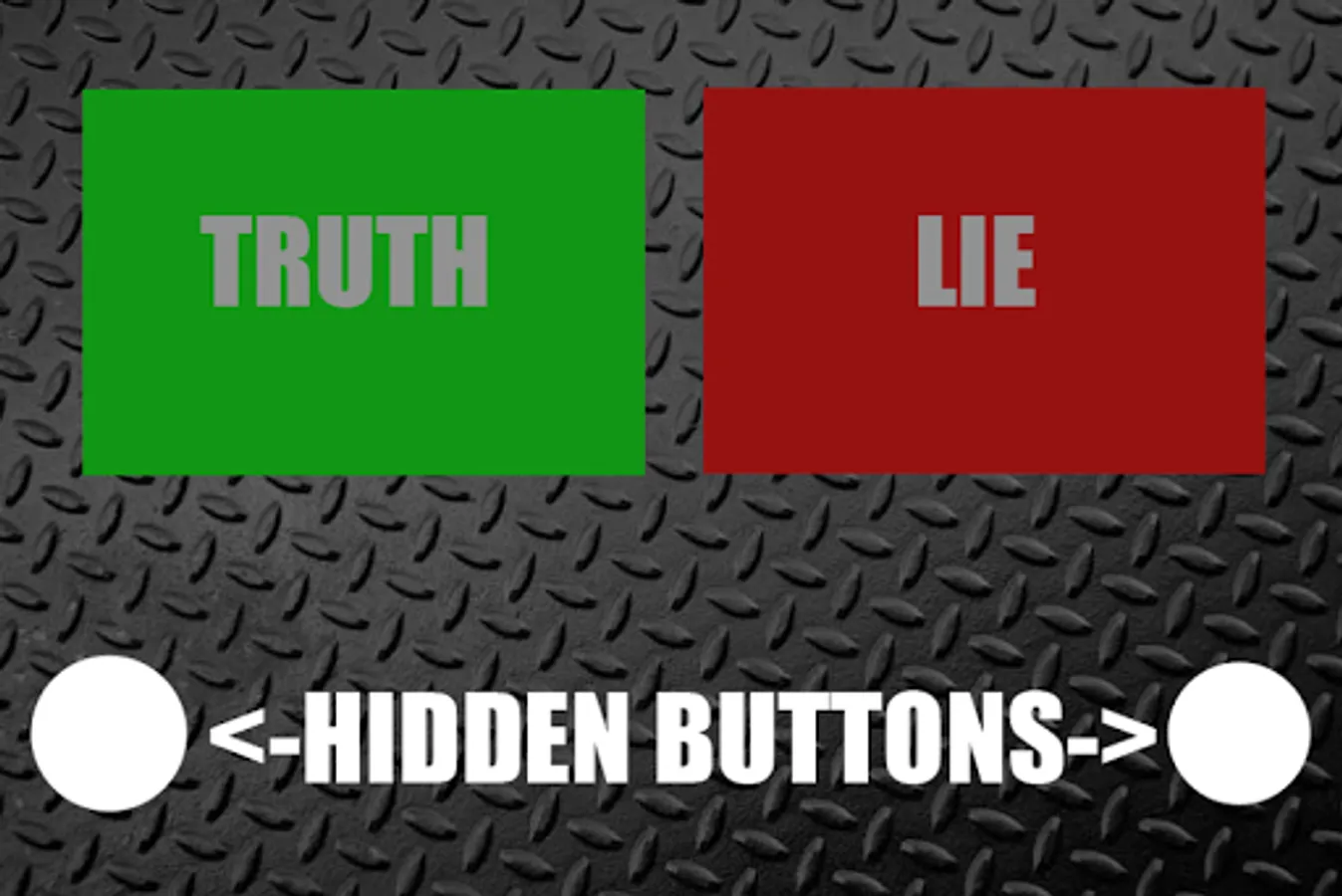 ► There are two hidden buttons right below the indicators of TRUTH and LIE respectively. They are marked on the screenshots of this app and also there is an indicator message that shows only for the first two seconds after you start the lying scanner app.