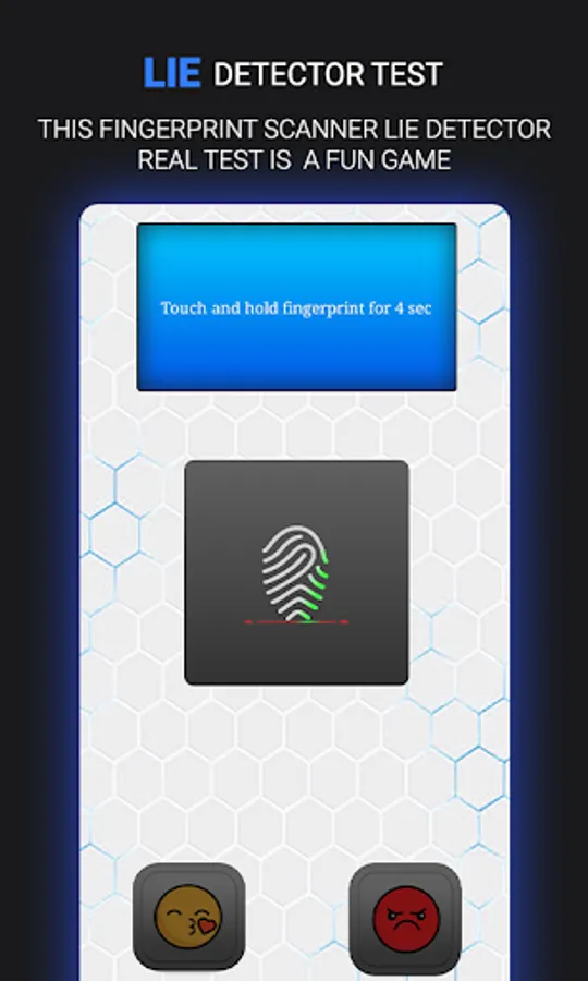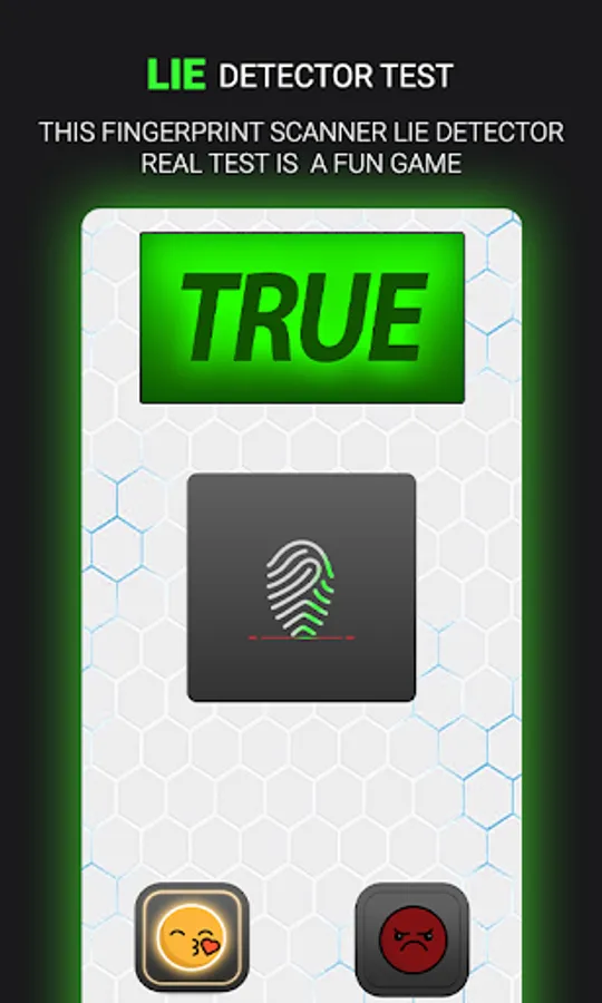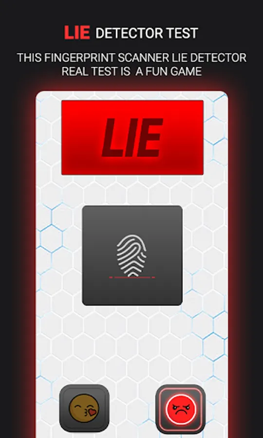 This prank lie detector truth or lie test app is only used to play a joke with friends. There is no real lie detector app. You can use this Prank lie detector test with your voice and put your finger on the scanner as a "prank" result.