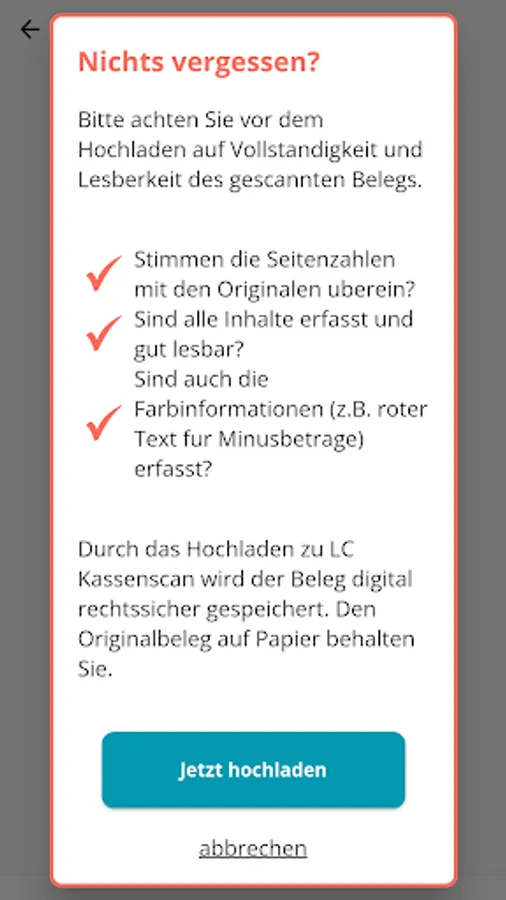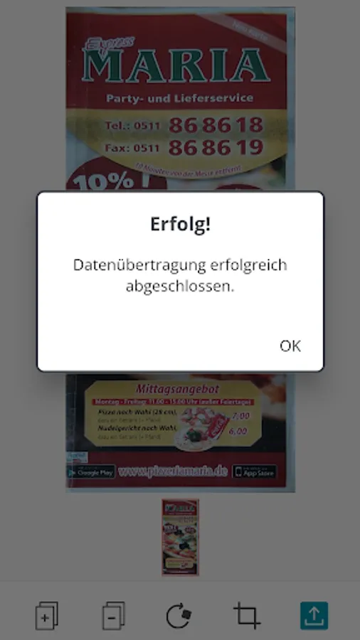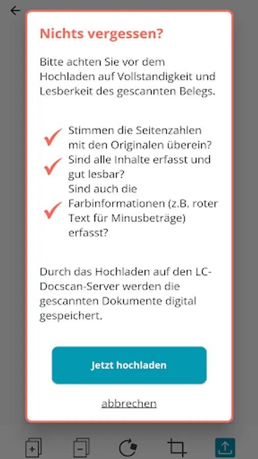 After scanning one or more images, LC-Docscan creates a PDF document from it and sends it to the server for further processing.