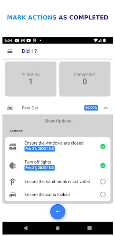 date and β° time of the completed action!
