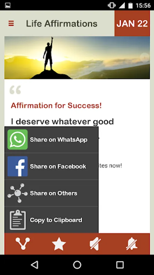 Life Changing Affirmations Daily brings the wisdom of most powerful Law of Attraction - Affirmations to you in a form of Mobile App, wake up every day, with life changing Affirmations, starting today.