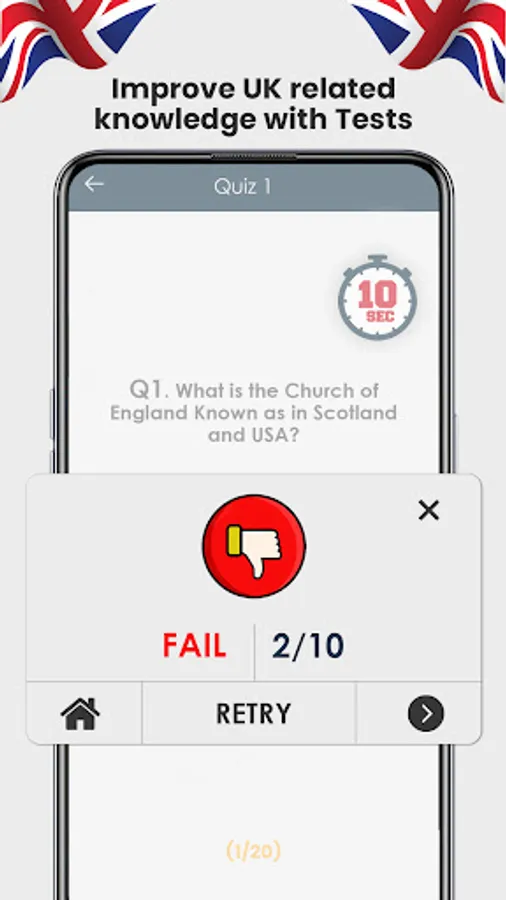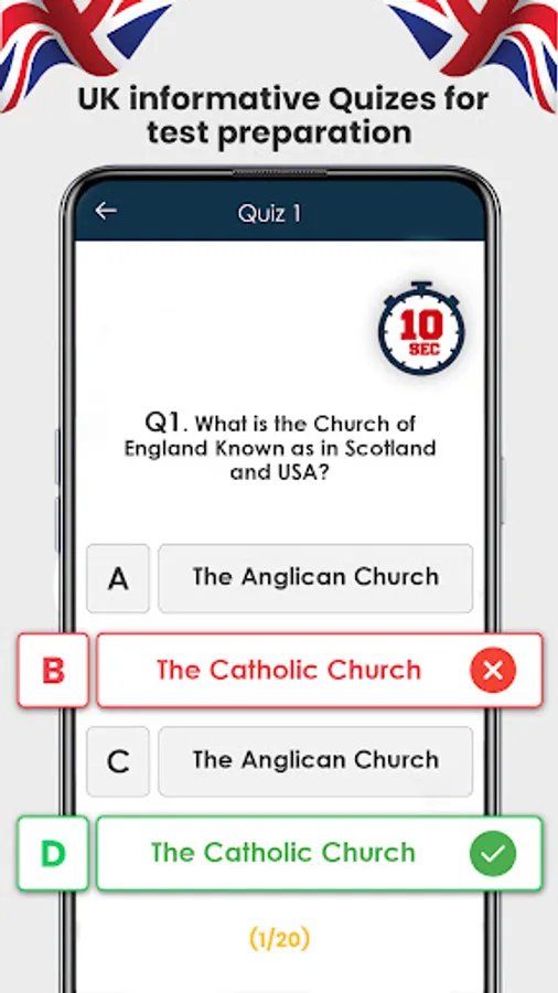 ★ Life in the UK test Questions: Life in the UK Test Questions and Answers app provides plenty of quizzes in the form of multiple choice questions about UK holidays, language of UK, and British history.