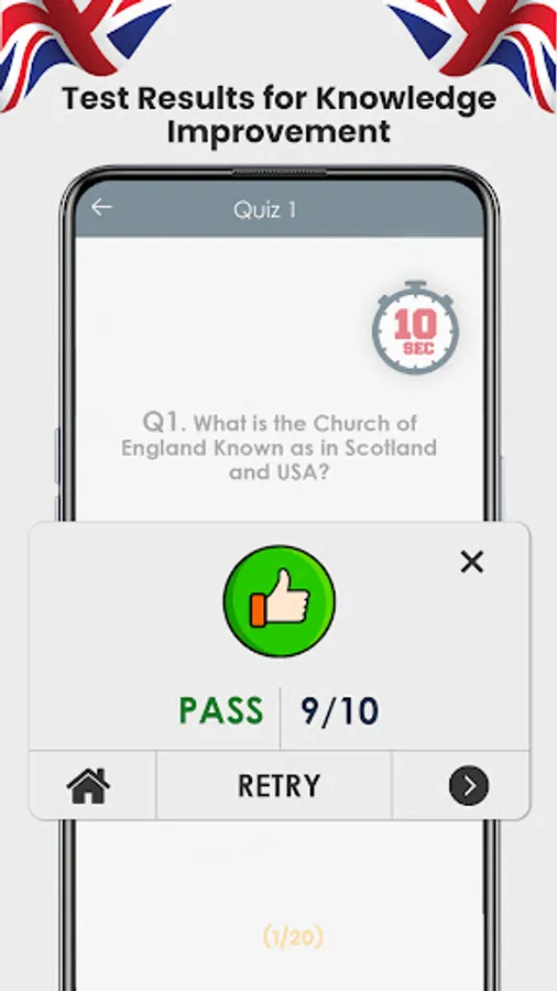 ★ Life in UK test Time Duration: Each citizenship test contains 10 MCQs. Test preparation app limited time to 30 seconds for solving one question of life in the UK practice test.