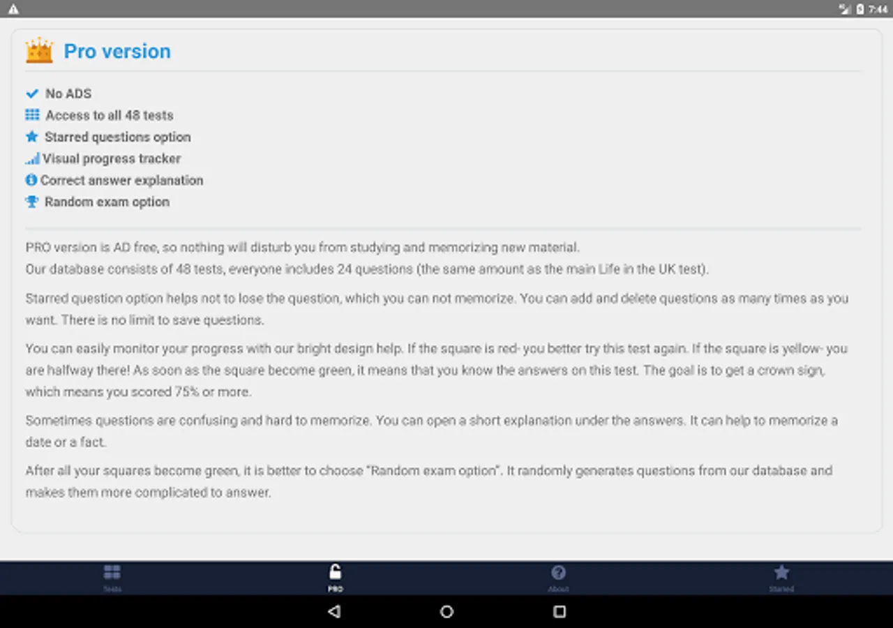 With the help of our app, you don’t need to buy a book. We added a short explanation to most of our questions, that will help you to study easier and much quicker. You can see full text in PRO version or only part of it in our free version.