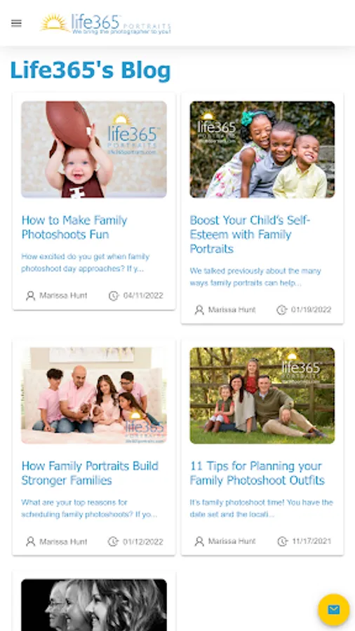 The official Life365 Portraits app is your place to view, share, and cherish your family portraits! Schedule your next in-home photoshoot with one of our professional photographers in your service area. Visit the Life365 Blog for photoshoot tips and fun parenting advice. View your portraits from your Life365 photoshoot and upload your own to share with friends and family. Then, finish up by designing your own wall gallery!