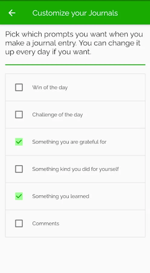 After you’ve set your goal, you can track your progress with your daily journal entry.