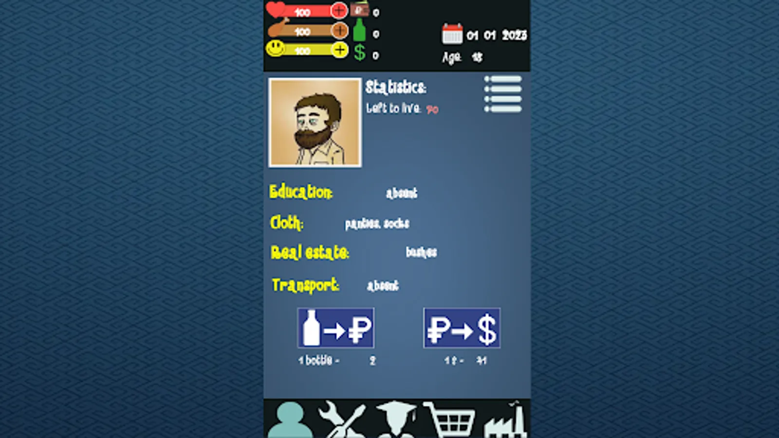 survival life simulator! a life simulation game where you start playing as a homeless person, wearing only socks and shorts, will you prove to everyone, and most importantly to yourself,яндере симулятор that you can survive in any situation Life simulator, you have to survive in a harsh world, steal food from pigeons, and the best entertainment for you is to sing songs on the bus until you get kicked out, collect bottles, sweep yards, get education and real estate, prove to everyone what this world is for the strongest.yandere simulator