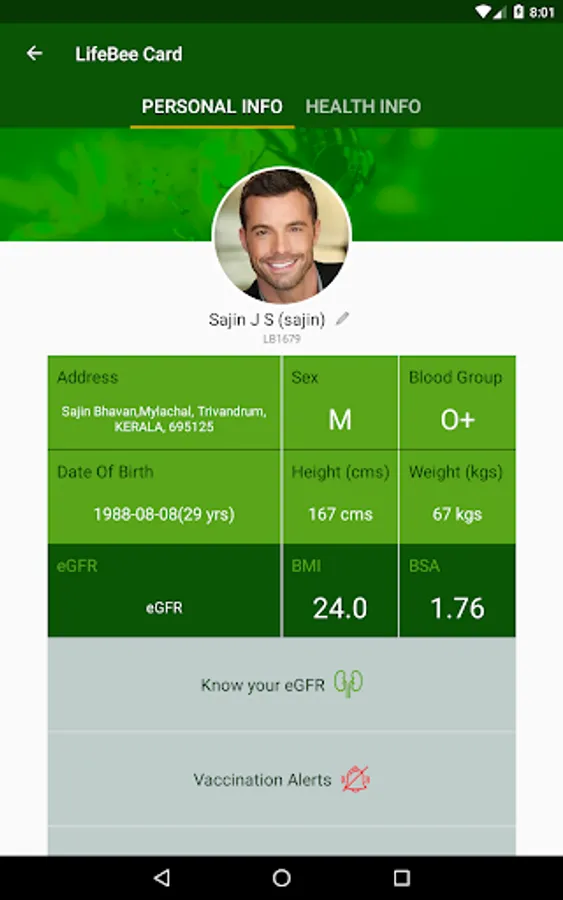 The Life-bee Card brings an elegant view of “Personal Health Records”. A comprehensive approach through different sections on allergies, devices in use, Health insurance, Hospital cards etc is provided.
