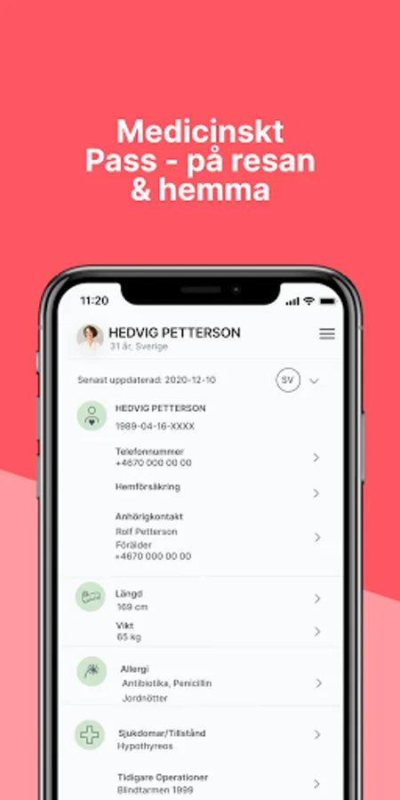 I ditt Medicinska pass lägger du till det viktigaste om dig, t.ex. allergier, blodgrupp och anhörighetskontakt.