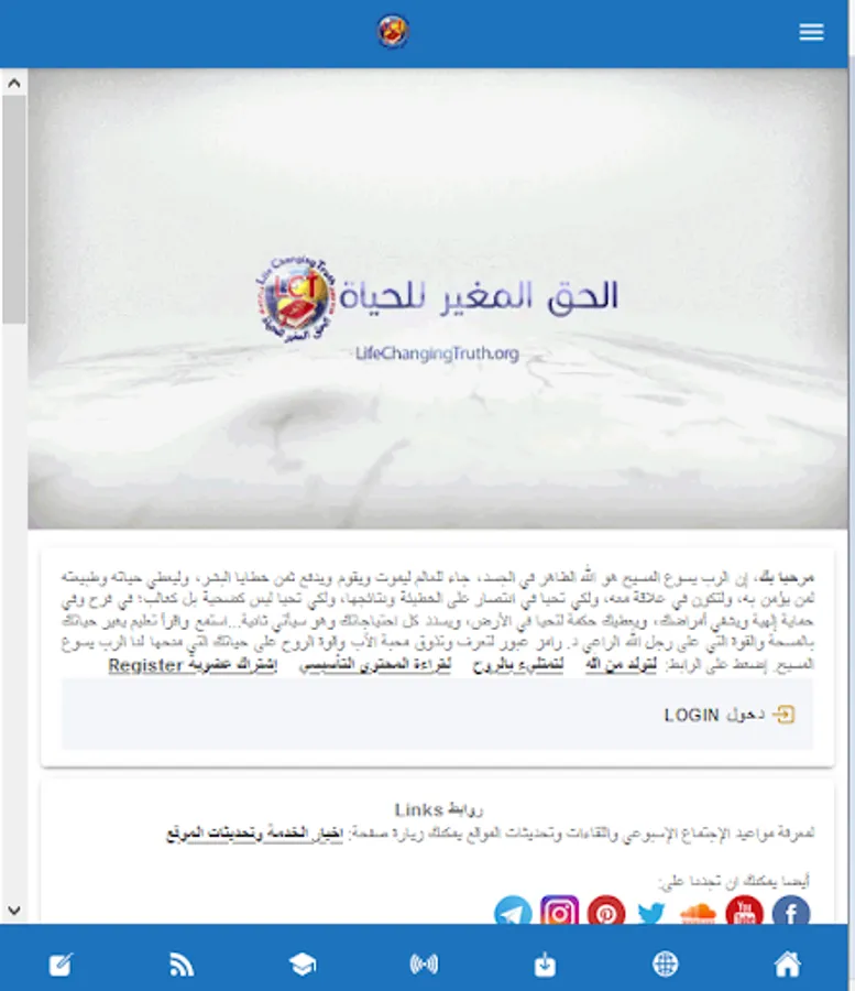 خدمة الحق المغير للحياة تساعدك أن تعرف الله أكثر ولنبني حياتك فتصير في معرفة المسيح يسوع الرب مقالات عظات مجانية تعليم كتابي أسئلة كتابية تبدو عسرة, الشفاء الإلهي, الإيمان, تسديد الإحتياجات بفيض ووفرة, العلاقة مع الله, الروح القدس الملء, الألسنة, الصلاة المستجابة, مواهب الروح, الخدمة الناجحة والمثمرة, الإرتباط الزواج الأسرة المسيحية. التحرر من الخطيئة (الخطية) والخطايا والعادات السيئة. التبرر بعمل يسوع المسيح في الصليب والقيامة. مواضيع من الكتاب المقدس تمس حياتك اليومية.