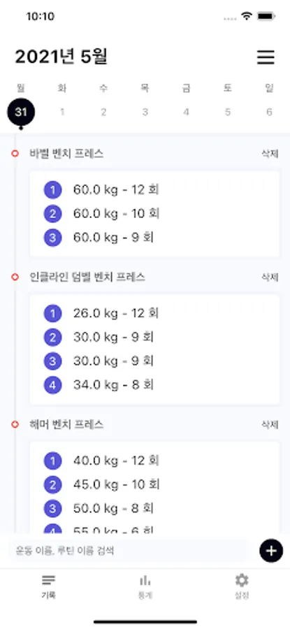 Gym Log allows you to easily record the workouts performed on a daily basis.