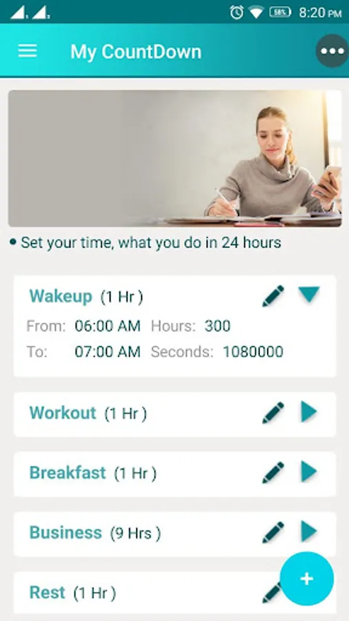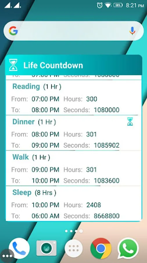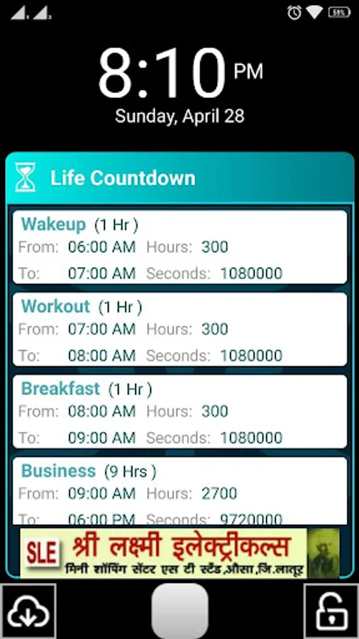 This app is developed with the main focus on maintaining the daily tasks which need to be achieved within a time frame. Here you can specify the start of the tasks and the end of the tasks(till when you want to achieve these goals/tasks), and then you define your daily routine with the time frames. So that you all set, from now you can see your tasks with the live countdown on your home screen(with the help of widget) and you also set it on the lock screen, so that you will always be prompted with the current task to be done and the remaining countdown for the tasks.