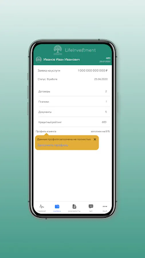 Finance Wings application - allows any user to register a client's personal account in order to leave an application for the provision of services for business accounting support, filling out declarations, an application for the provision of financial services. The application allows you to track the status of the application, view contracts and invoices, exchange documents.