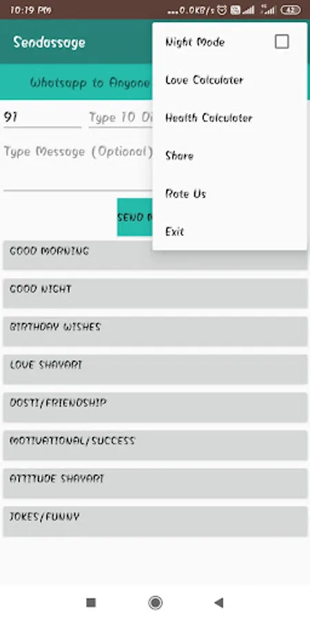 Sendassage is one of the best Hindi and English Shayari and Quotes collection also its amazing tool for message app for directly send message to any unknown number in any country without save the number.