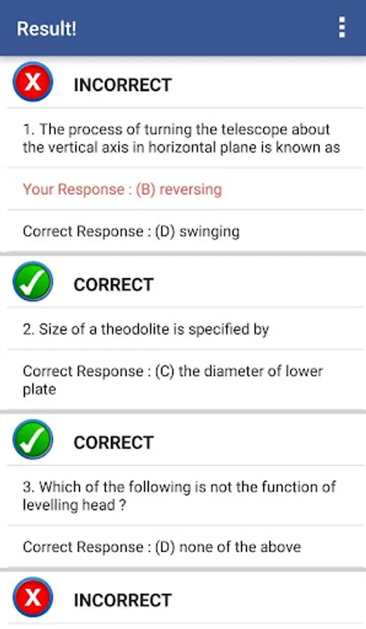 The application offers online test series comprising of Practice & Mock MCQ Tests of multiple choice questions (MCQ) on various Civil Engineering topics required for competitive exams like GATE & IES.