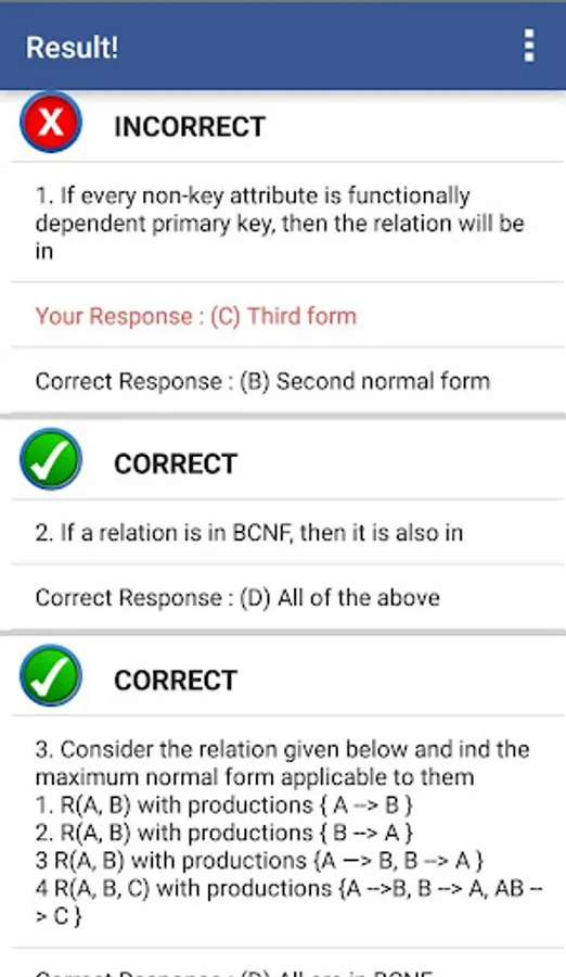 This online Multiple choice questions (MCQ) quiz application offers features like: