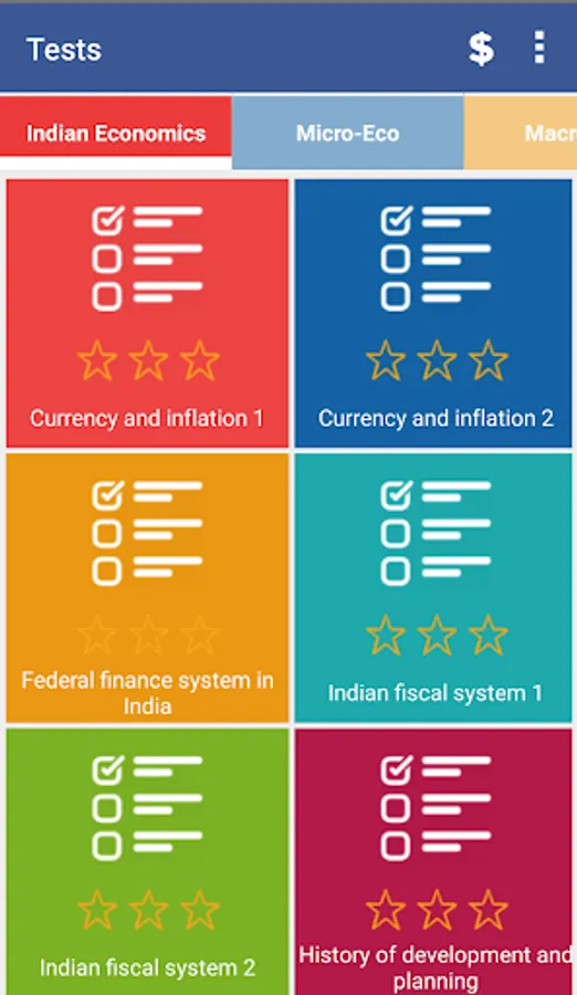 * Quality test series, Bookmark feature and Revision center for multiple choice questions (MCQ) on Indian Economics.