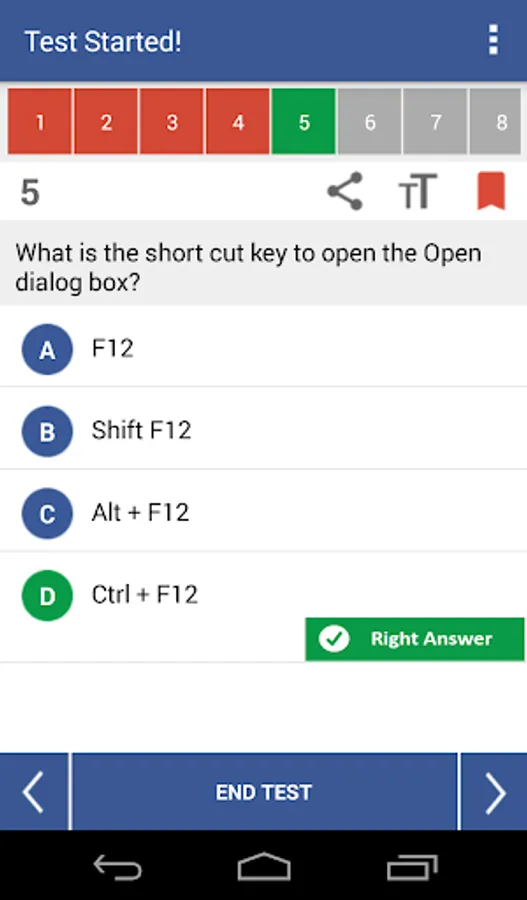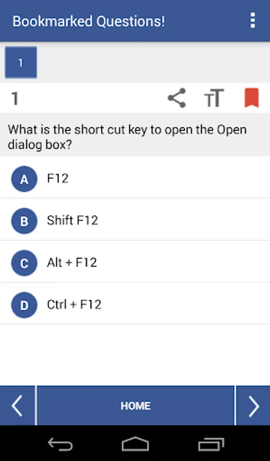* Bookmark feature for all multiple choice questions (MCQ) on MS-Word, MS-Powerpoint, MS-Access and HTML