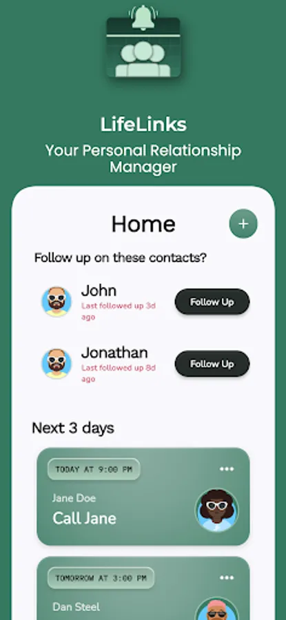 We are thrilled to introduce "LifeLinks", the app designed to enrich your life by helping you manage and maintain the most important connections in your life. Our lives are so busy these days and it's easy to lose touch with the people who matter most to us. But now, with LifeLinks, you can ensure you always stay in touch and never miss an important date.