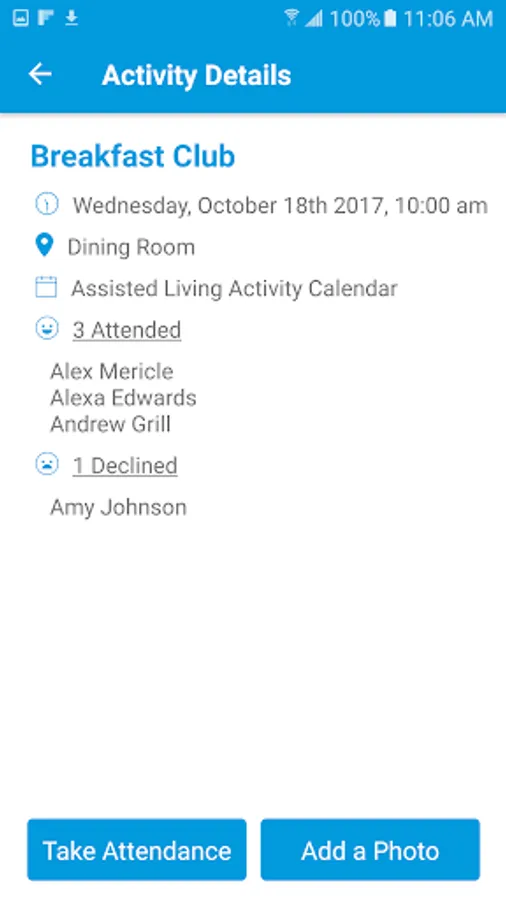 LifeLoop's android app is a super simple tool for staff members of senior living communities to chart resident attendance at community events, capture and share photos, and streamline calendar management.