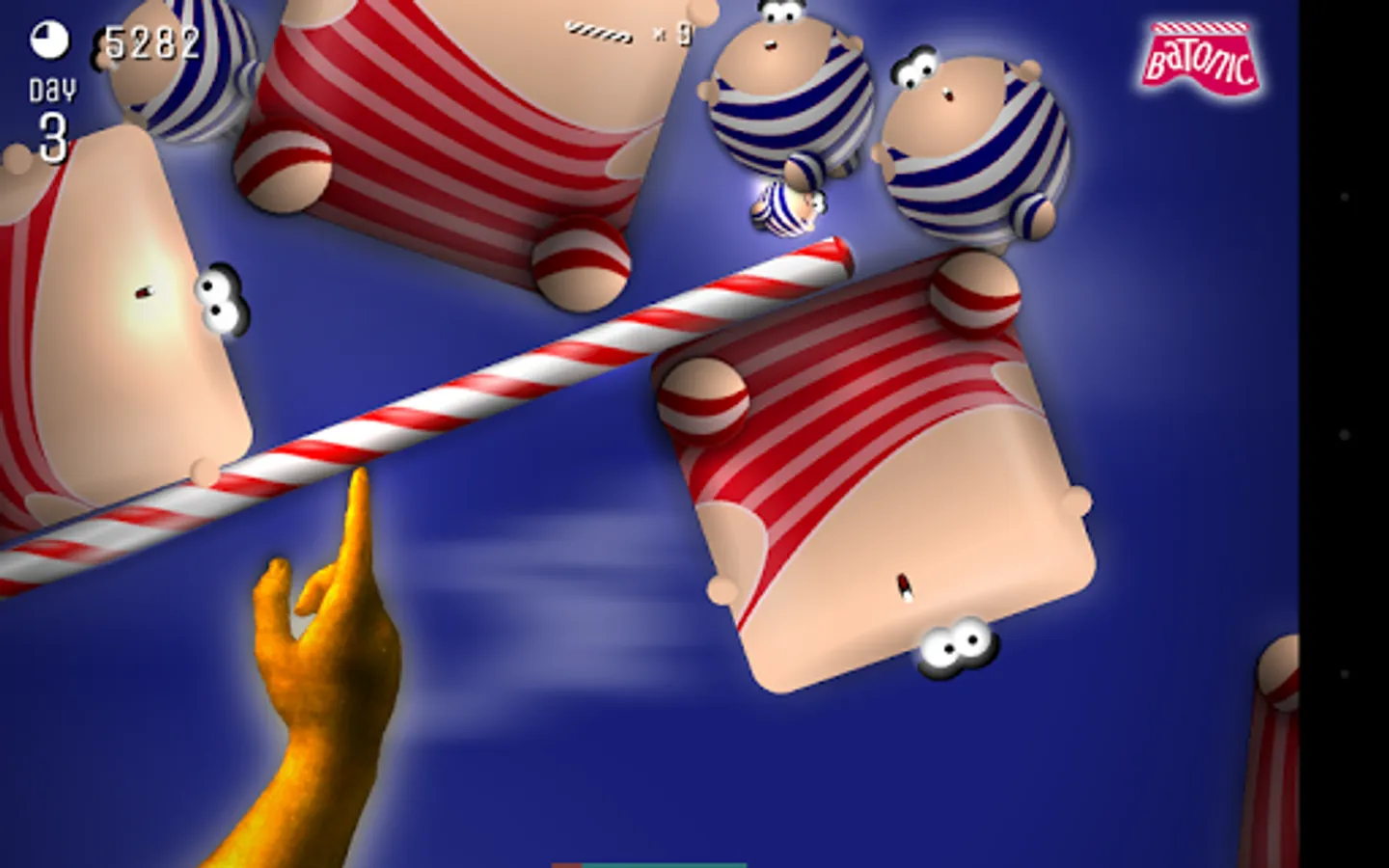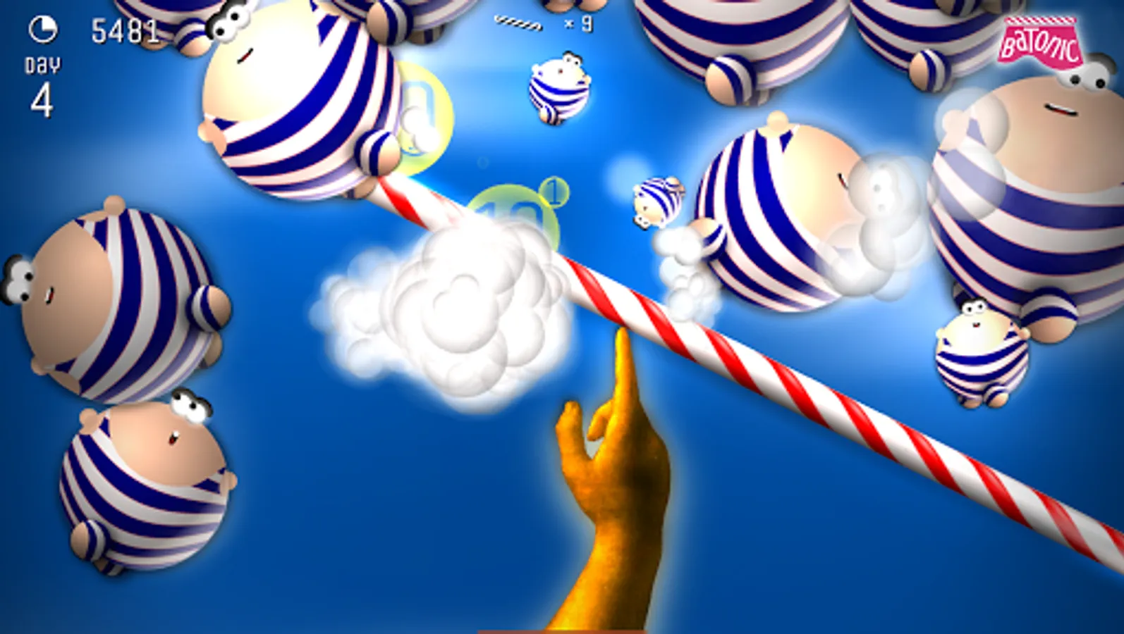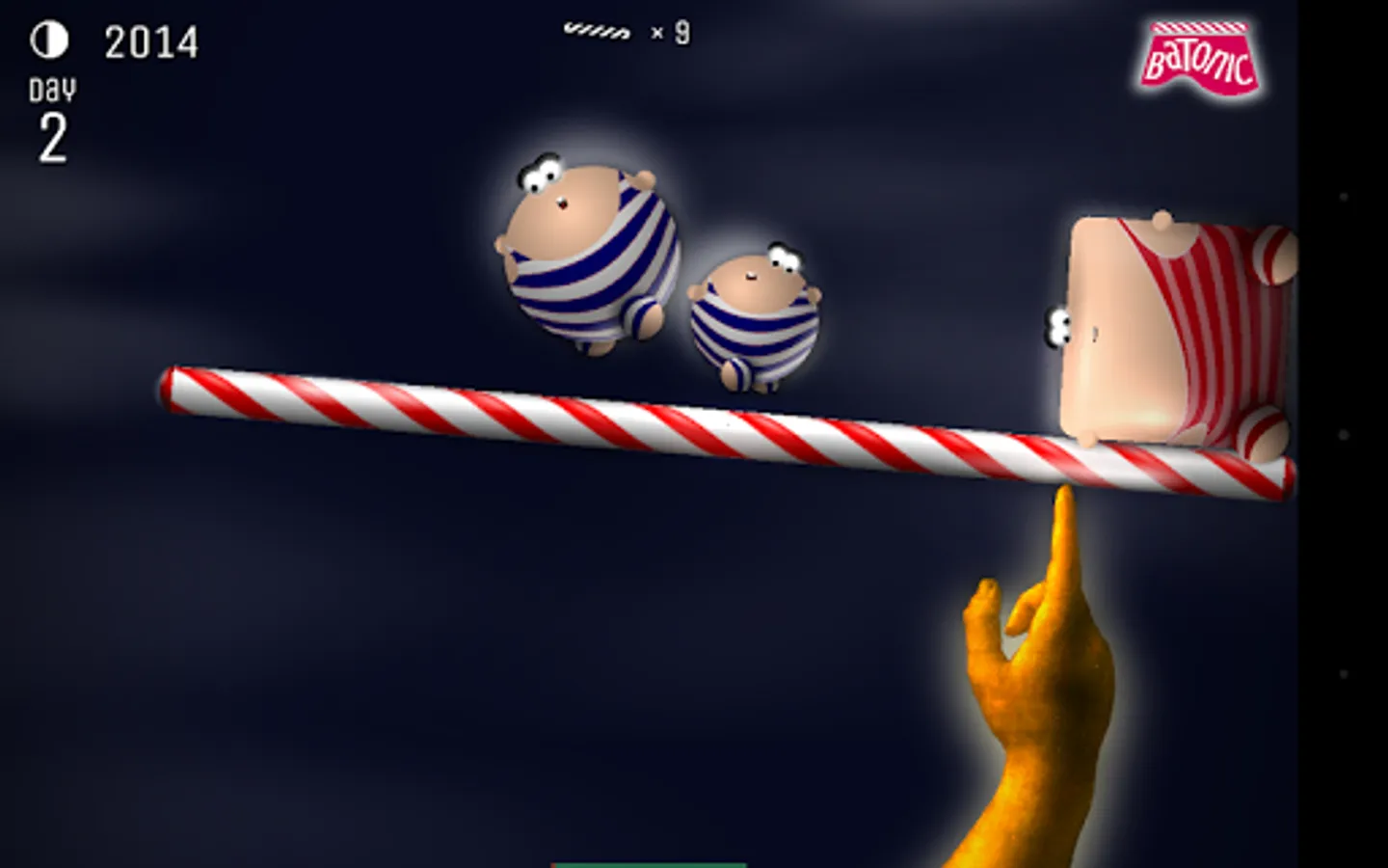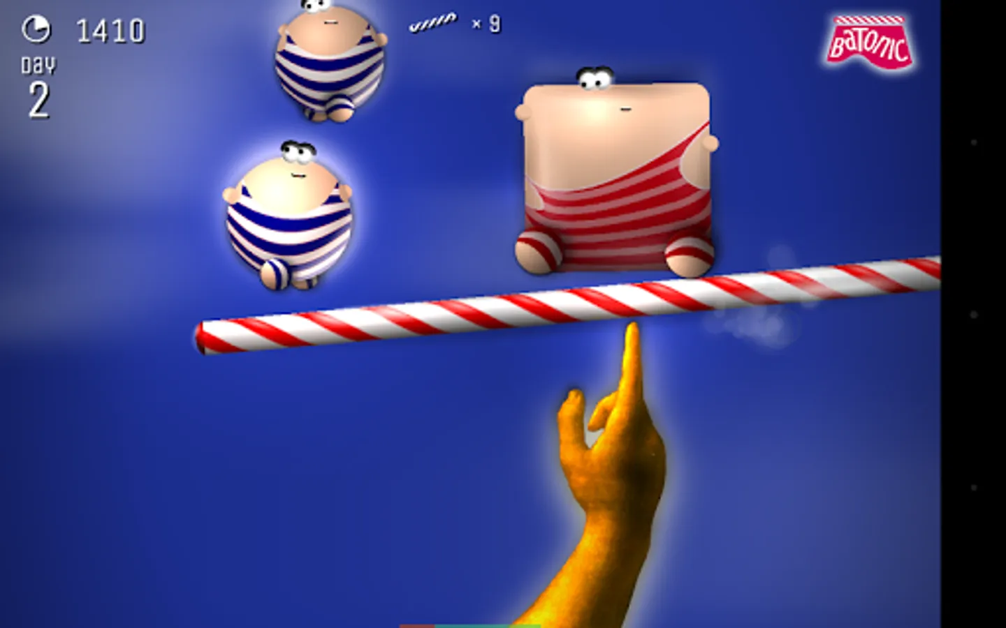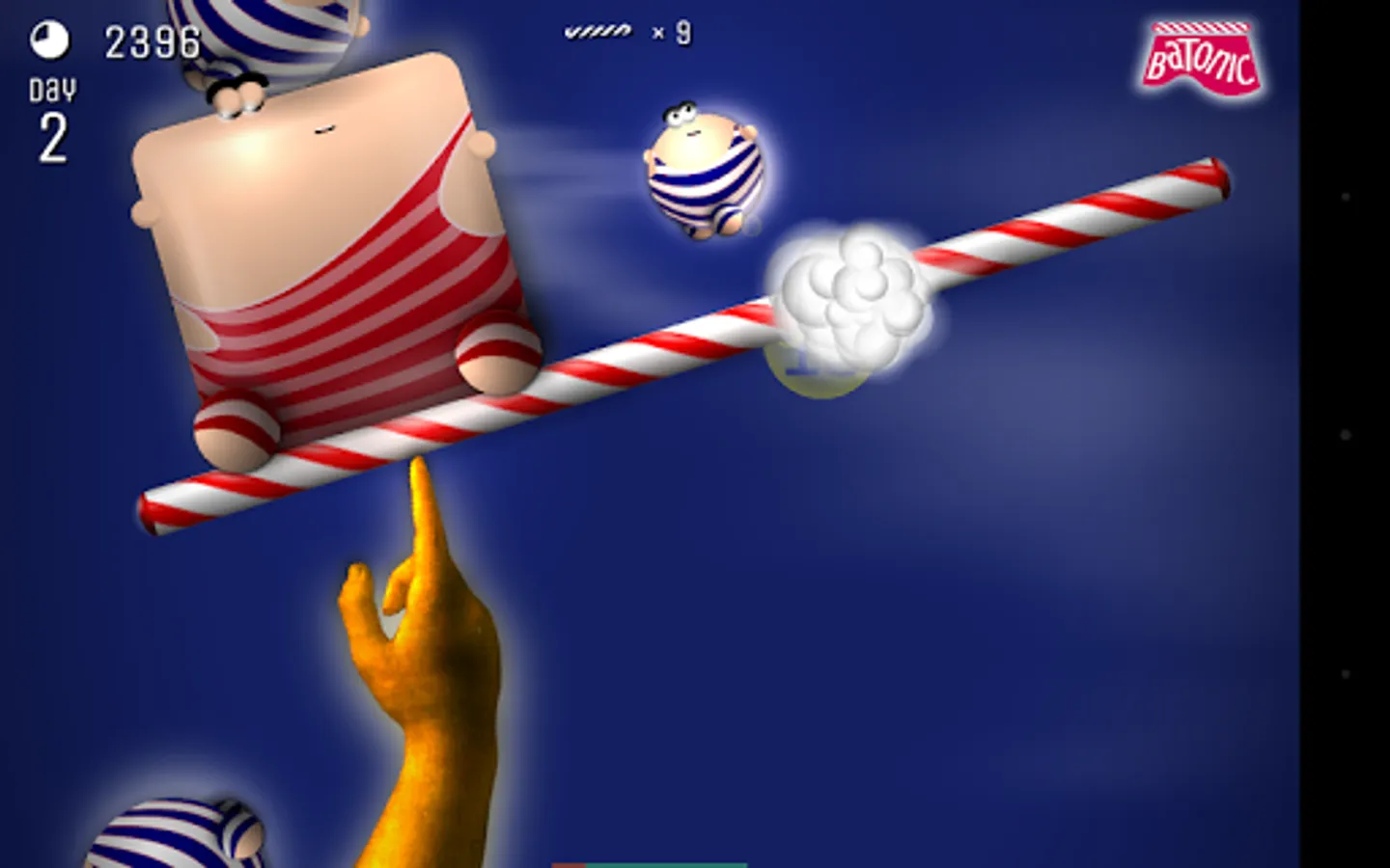 Batonic is a fast, frenzied, fun-filled 2D arcade game of skill and balance. Prop the baton on the tip of your finger — and deflect hordes of creatures that fall from the sky trying to strike you out of balance.