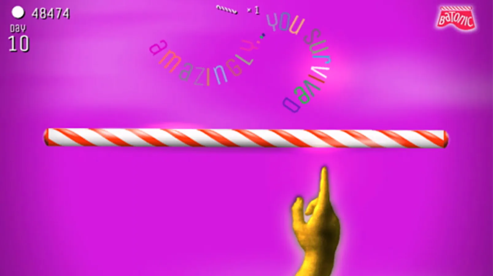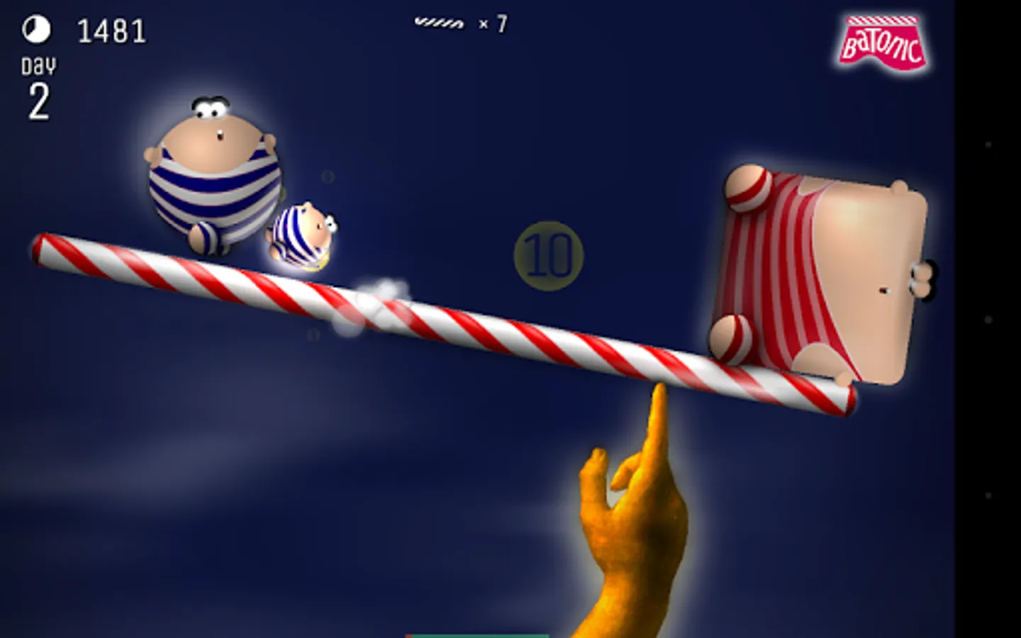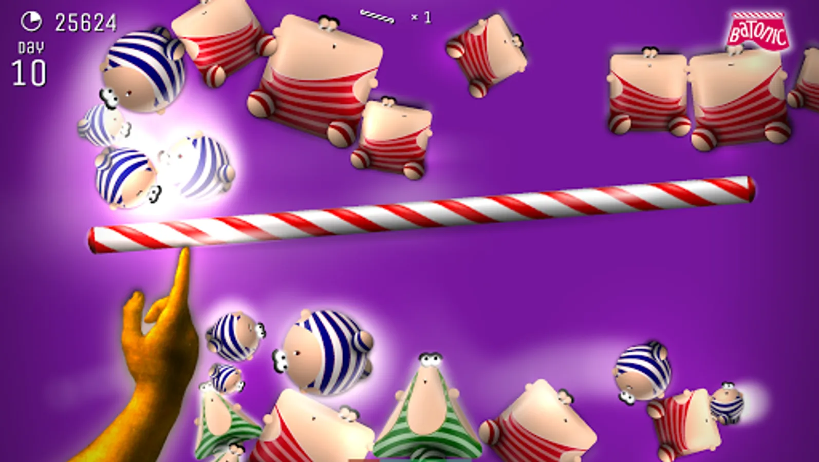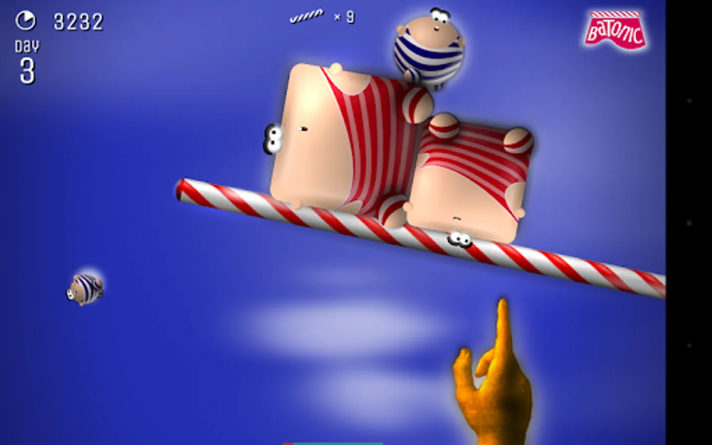 Batonic is a fast, frenzied, fun-filled 2D arcade game of skill and balance. Prop the baton on the tip of your finger — and deflect hordes of creatures that fall from the sky trying to strike you out of balance.