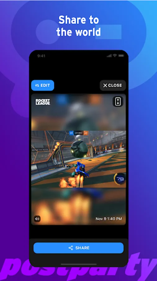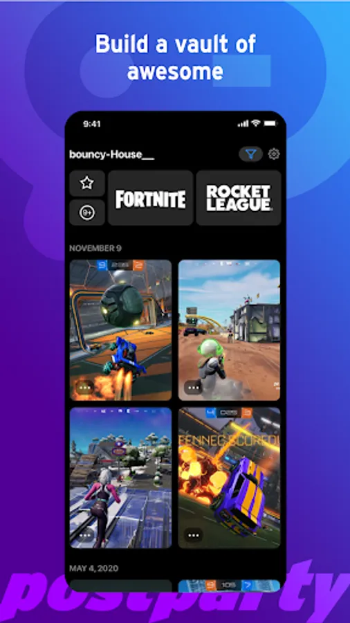 2. Capture moments from Fortnite or Rocket League with the press and hold of a button on your controller. Postparty will save, store and even organize your content in the app.