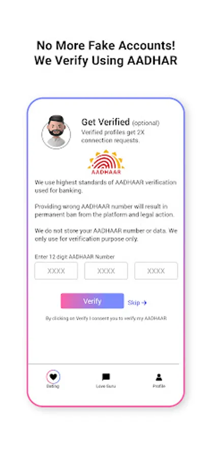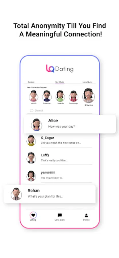 2) Find Meaningful Relaitonship Safely: Total Privacy and anonymity unless you decide to reveal your identity. And hey ladies! We care about your safety and privacy the most. If anyone wants to send you a picture they need to ask you for your permission. So no more unsolicited pics.