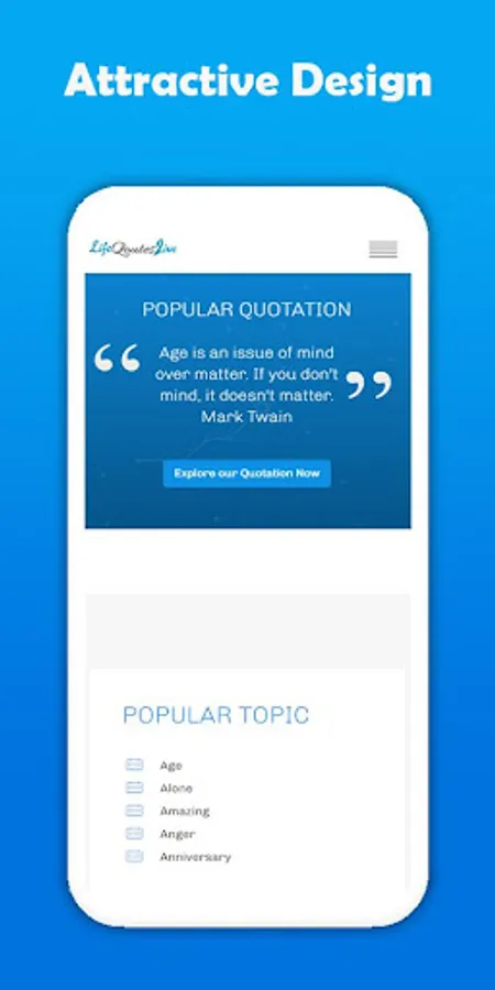 • The homepage of the best life quotes app consists of a famous quotation that is updated daily.