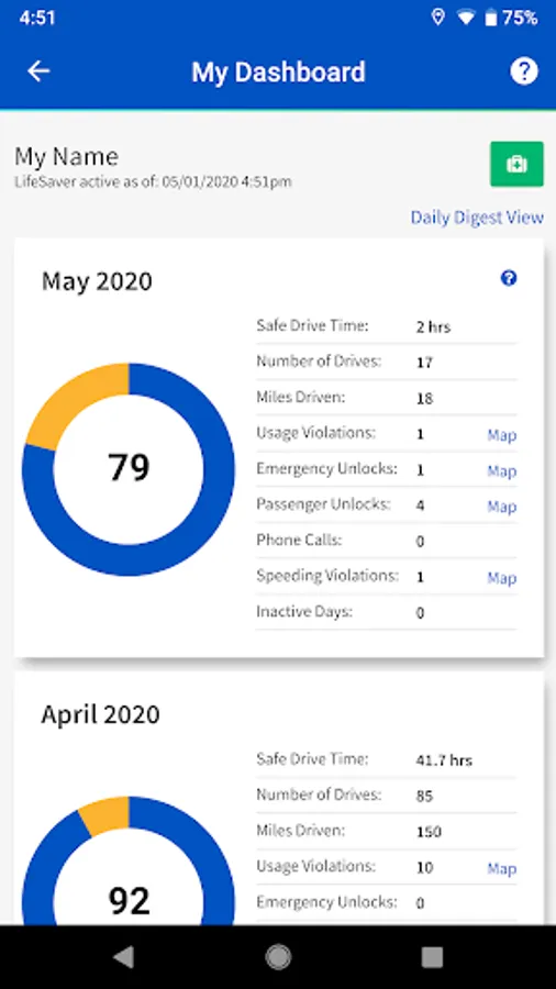 The LifeSaver app stays silent in the background and automatically wakes up to deter distracted driving for fleets. LifeSaver runs silent in the background and automatically wakes up to lock the phone when driving. Our in-app dashboard lets your driver view their safety score.