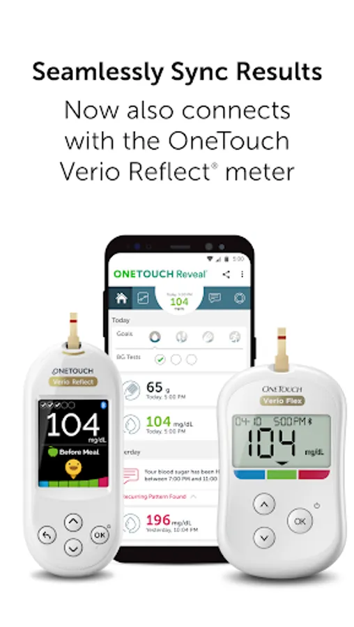 The OneTouch Reveal® app seamlessly syncs data with the OneTouch Verio Reflect® meter and the OneTouch Verio Flex® meter to change the way you see your blood glucose.