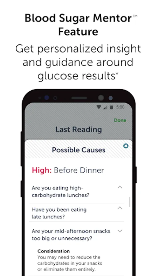 • With the Blood Sugar Mentor™ feature**, you get personalized guidance, insight, and encouragement to help you manage your blood glucose (only available when using OneTouch Verio Reflect™ meter).
