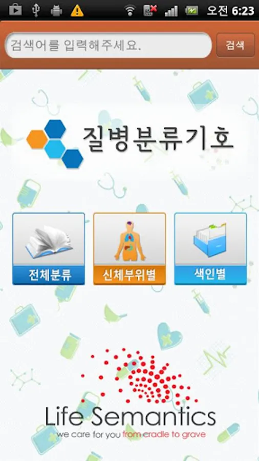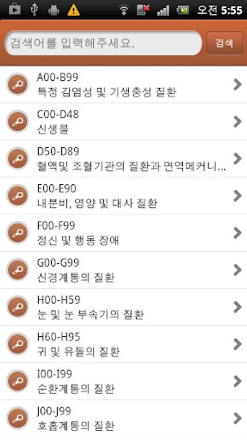 This program supports search of disease classification codes for Korean Standard Disease Sign Classification (KCD6) and International Disease Sign Classification (ICD10).