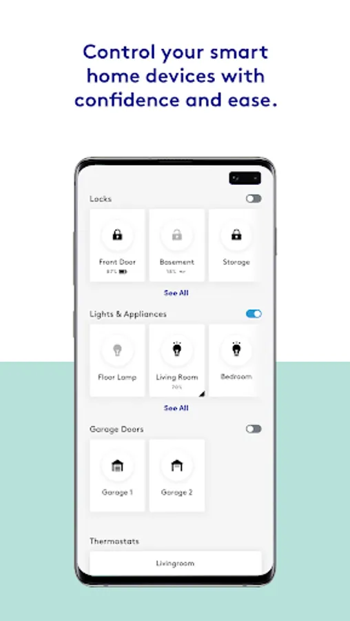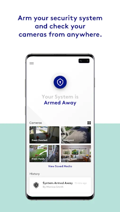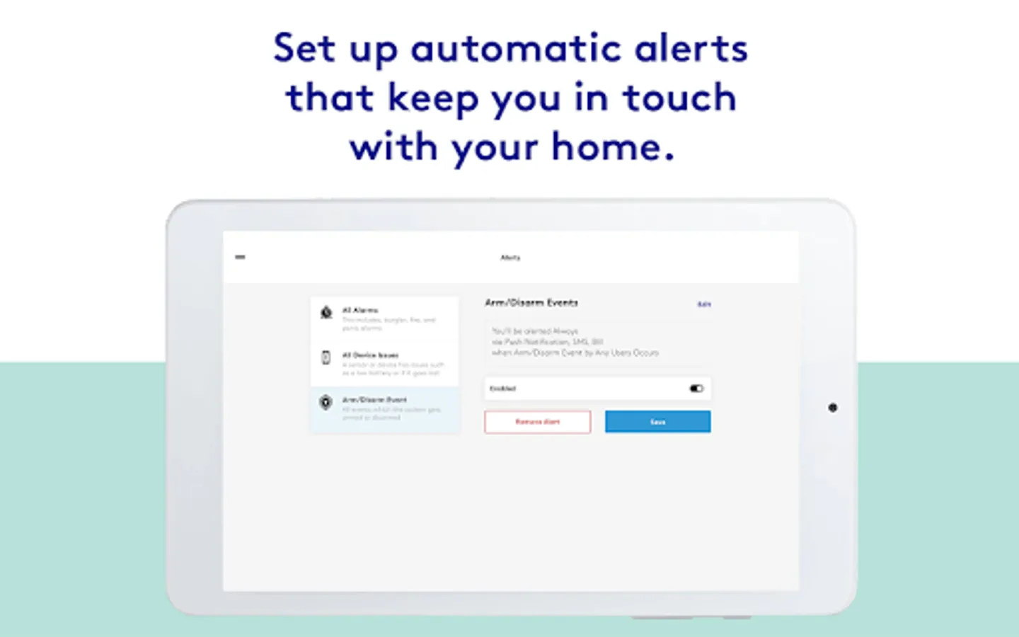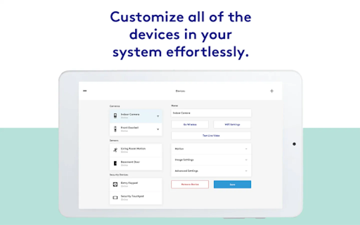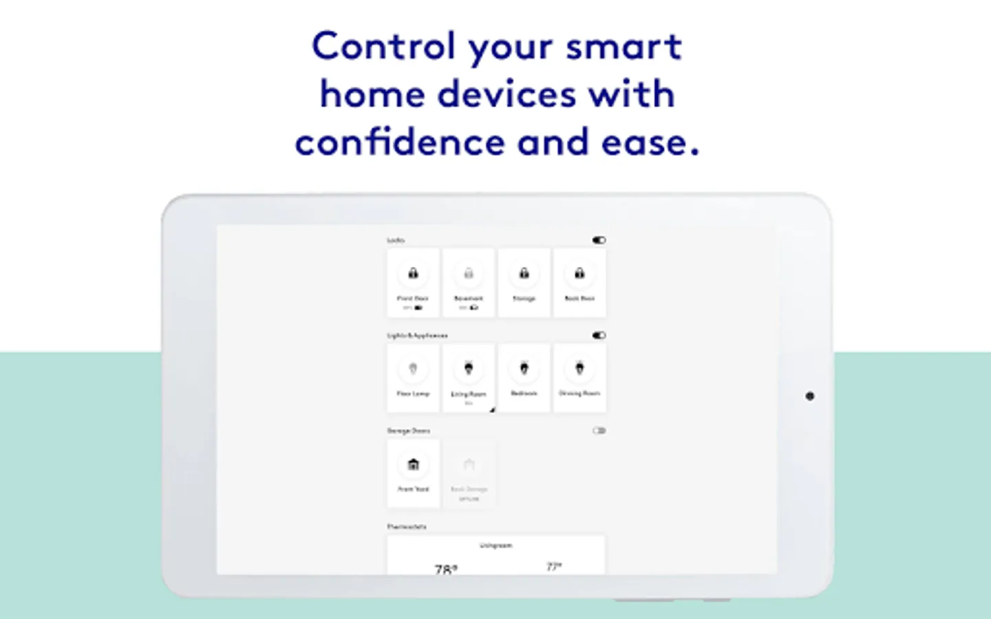 - Turn on and off the lights, lock/unlock the door, adjust the thermostat, and open/close your garage door with your security system