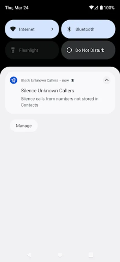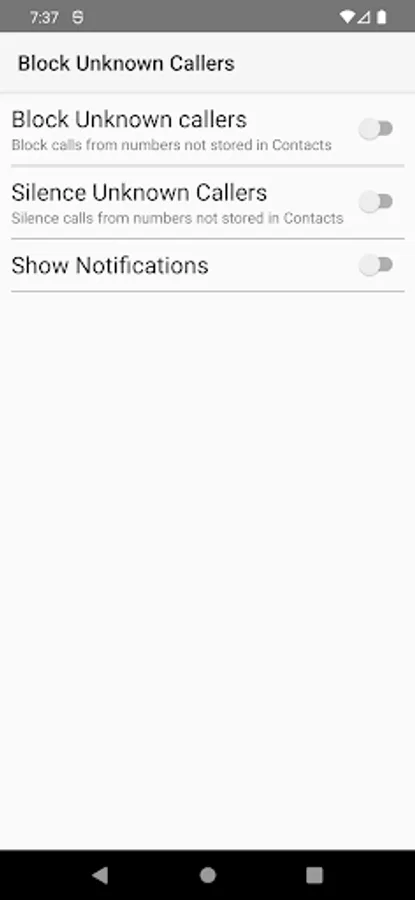 This application helps you block or silence incoming calls from numbers not stored in Contacts
