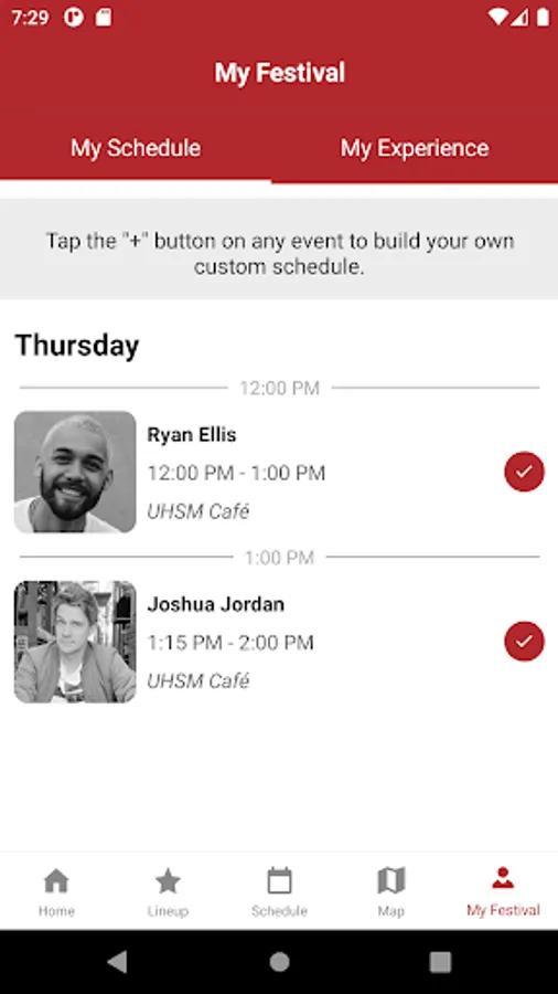 Keep track of your own schedule by adding events you want to attend.