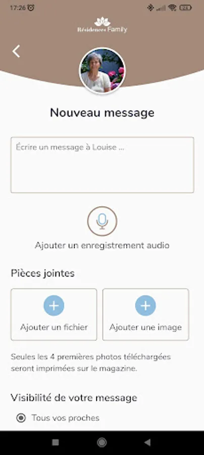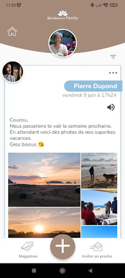 Résidences Family is a service entirely dedicated to seniors in assisted living facilities and their families. This solution is available on the Internet, tablet and smartphone. The main purpose of this application is to break the isolation of autonomous and fragile people and bring them closer to their families. The distant family must be informed and reassured. She must be able to act and support her parent remotely thanks to the services offered by the platform.