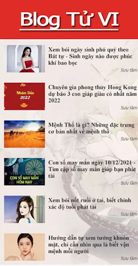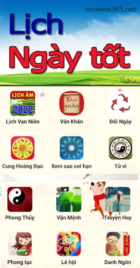 ► In the Expansion section of the application Perpetual Calendar 2023 - Lunar Calendar 2023you will discover a rich content repository of constellations, zodiac signs, customs and festivals in Vietnam. Nam, you can also quote and horoscope for life of 12 zodiac animals
