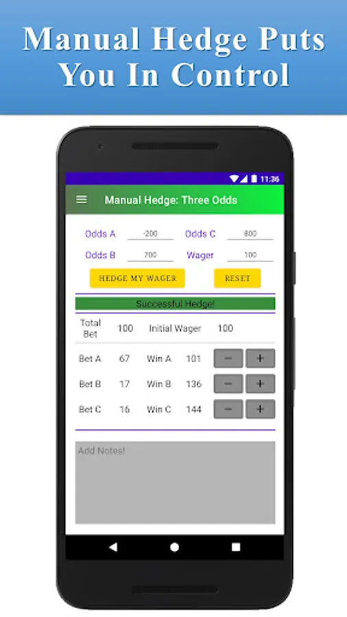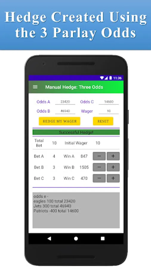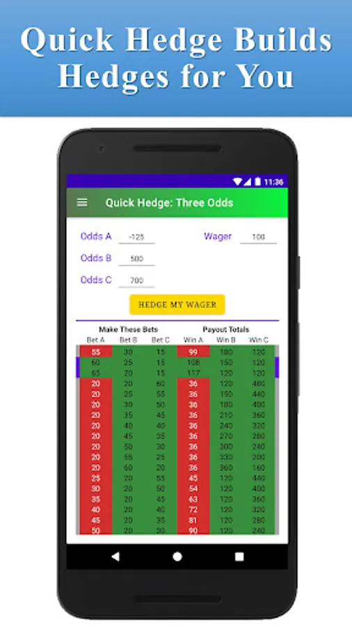 **** This is the Basic Version which includes AdMob Advertisements and has features locked. Pro Version unlocks Manual Hedging for 4, 5, 6, 7, 8, 9 odds. ****