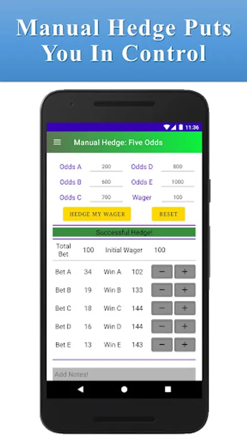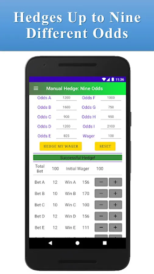 Smart Hedging Tool provides you the ability to build “what if” betting scenarios to reduce risk and protect bets from losses.