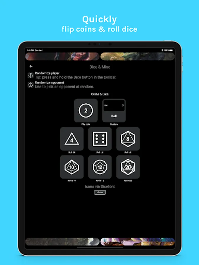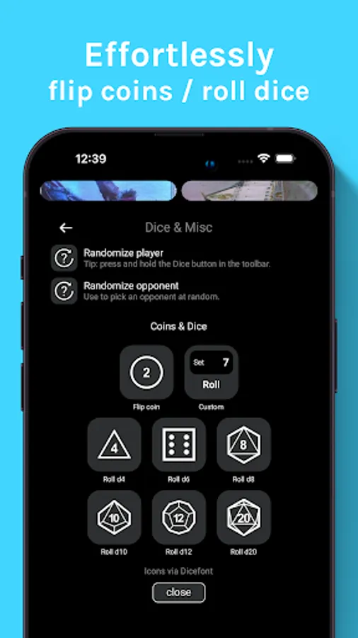 - A dice roller that can randomly pick a player, an opponent, and roll one of many dices - or flip a coin
