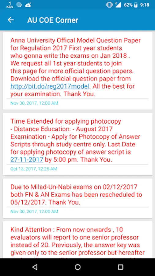 - Get all official Anna university notifications about the exams, timetable, pattern and all other news.
