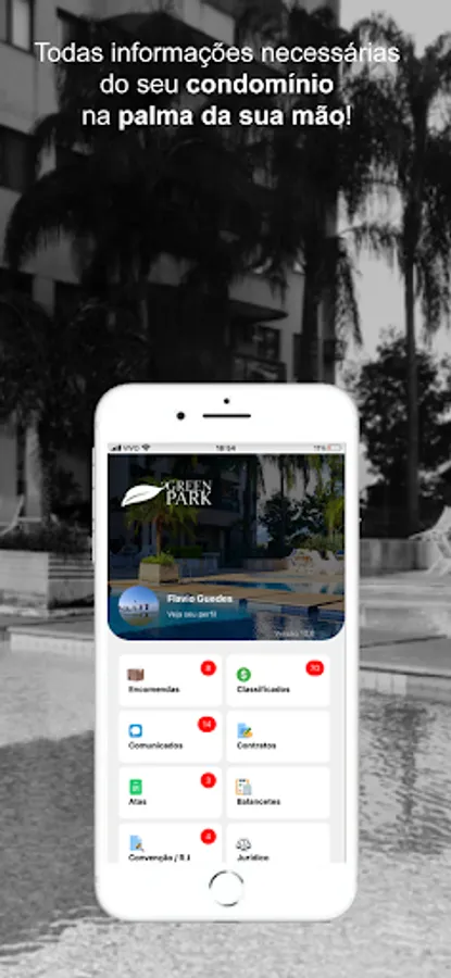 The GreenPark application was designed to make the most practical condominium management. The liquidator and the administration can send important alerts, manage condominium reservations, create poll for the tenants, manage correspondence, create digital portfolios for the use of pool, gym, yoga classes, judo classes, etc., attach documents and communications . All this with just a few clicks.