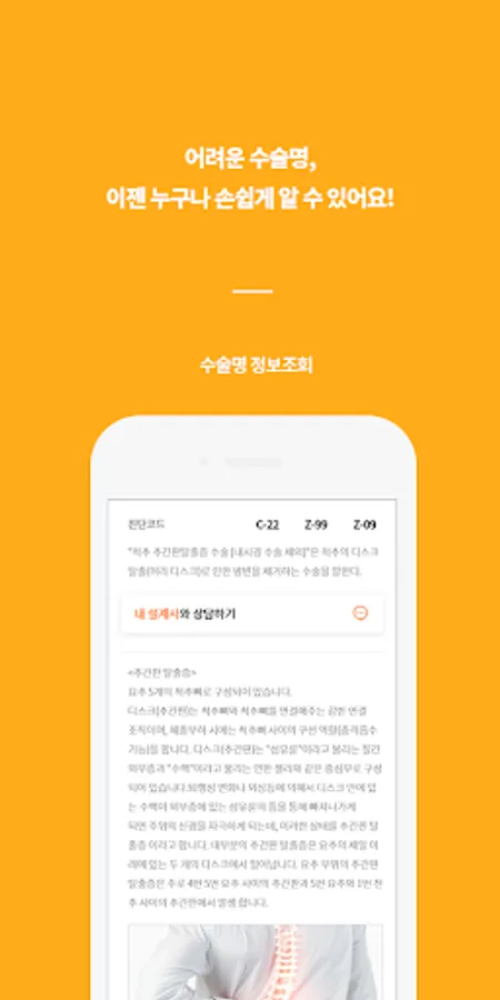- Even if you do not know the exact disease name, you can search by body part, disease name, symptoms, etc. and check information about the disease or surgery name.