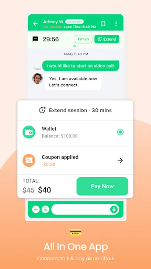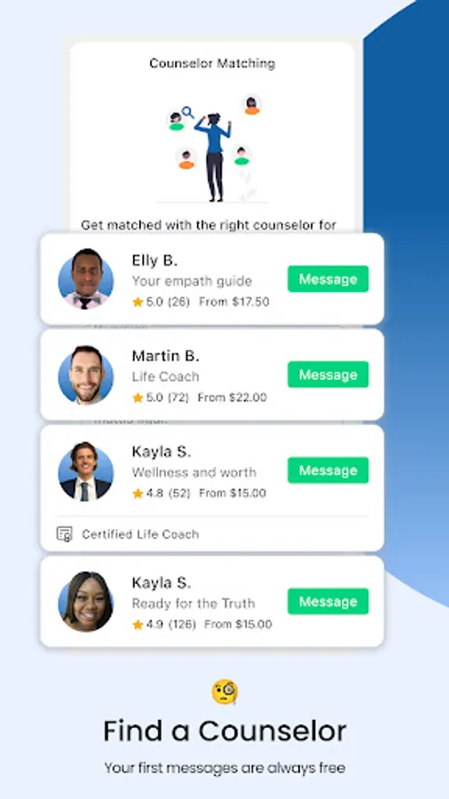 Liftalk is the most accessible and affordable solution for improving your mental health. Get matched with the perfect counselor based on your needs and connect with them directly from your phone, anywhere and in real time.
