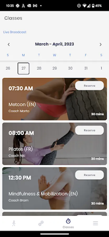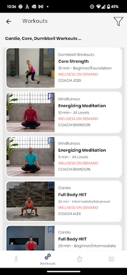 This app allows you to manage your wellness and fitness through personalized recommended workouts based on your goals and level. The workouts are automated or live, with a variety of choices including fitness, mindfulness, cardio, strength, yoga, pre-natal, Pilates, etc.
