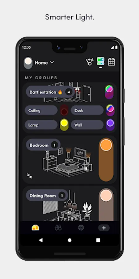 - Groups: control all lights in a group easily, including on/off and dimming with one touch from the Home Dashboard.