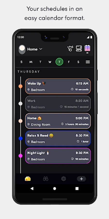 - Schedules: automate your lights to fade, change color, and turn on/off, all visible in an easy calendar-style view.