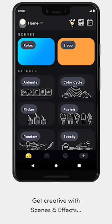 - Effects: play with special effects like the music visualizer, fire, move, candle flicker, strobe, color cycle & more, all in one place.