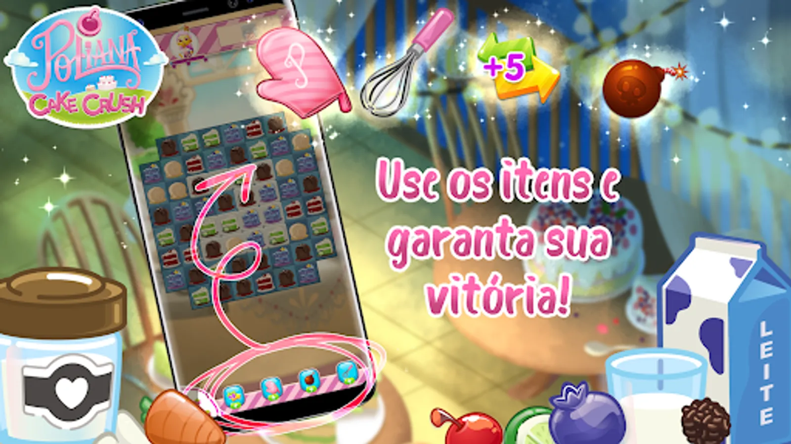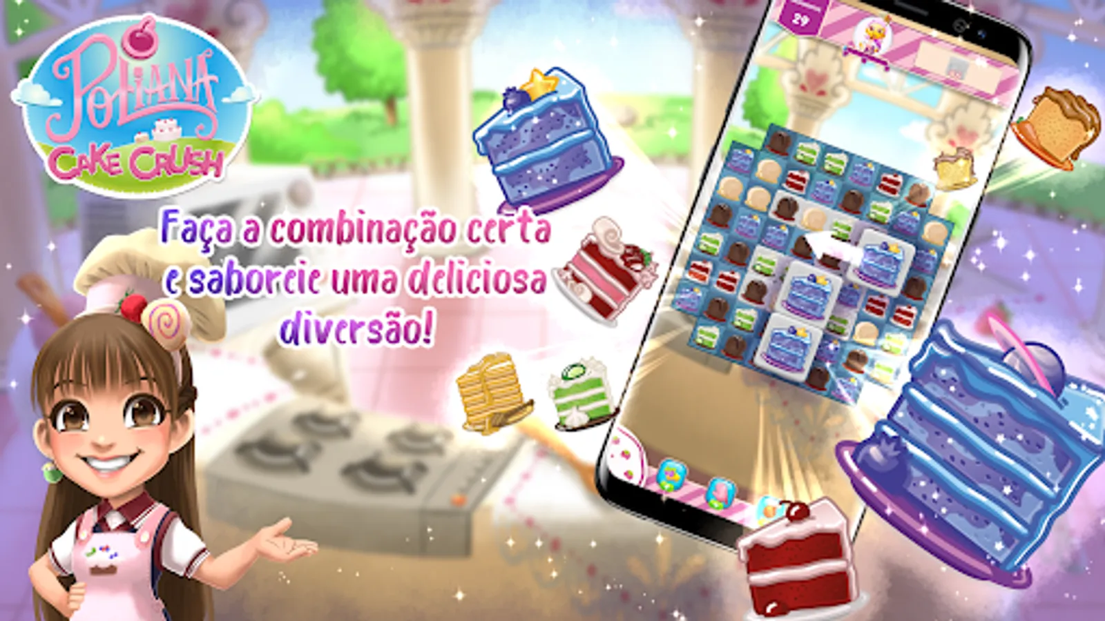 Download Poliana Cake Crush now and dive into an adventure full of sweets and fun!